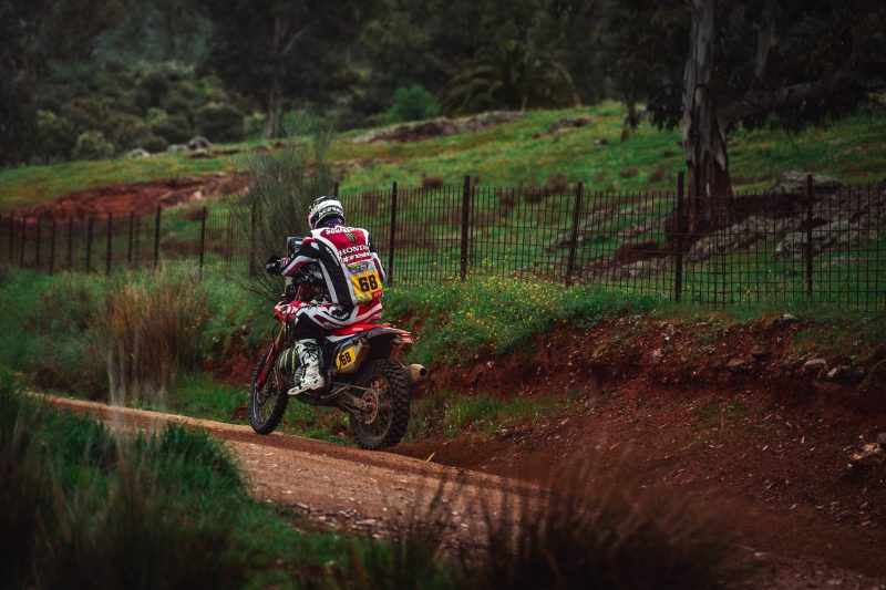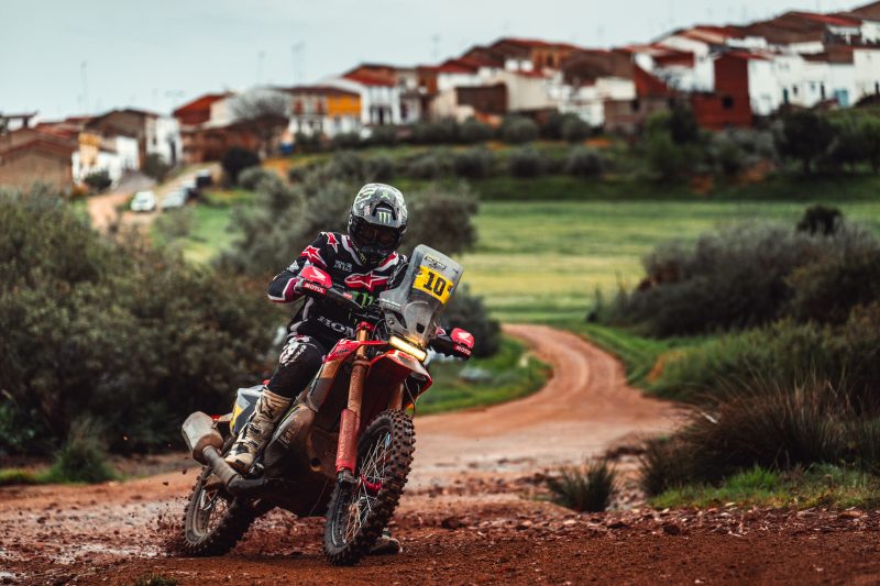Racing in front of his home fans, Tosha Schareina delivered a determined performance on the slippery tracks. Grip was hard to find aboard his Honda CRF450 RALLY, as the wet conditions, rocky sections and winding trails of the Extremadura region pushed riders to their limits. As the lead out rider after his stage victory yesterday, the Spaniard did well to keep Daniel Sanders within reach and despite being caught out by some misleading notes in the road book, he conceded just under two minutes by the end of the stage. He remains firmly in contention for the overall lead sitting 3’11” back.
