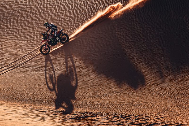 Skyler Howes once again showcased his consistency, enjoying the spectacular dunes and finishing fourth.  Although he remains fifth overall, Howes was pleased to reach the marathon camp with his tyres intact, meaning minimal work on the bike without assistance – one of the key challenges of the marathon stage.