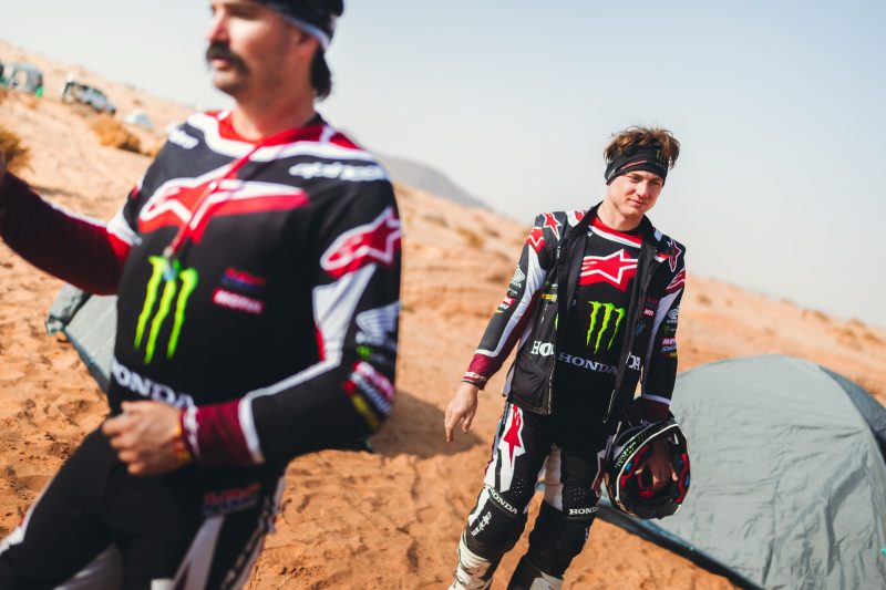 After a night spent under the stars without Monster Energy Honda HRC team support, competitors launched straight into a demanding 371 km special. Early sand gave way to rocky slabs, wadis and stony tracks, creating a relentless test of durability and tyre management.