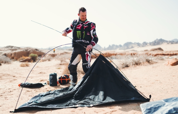 Skyler Howes left the marathon camp with serious concerns over his rear tyre after only makeshift repairs. Forced to nurse the bike throughout the stage, the American endured a difficult day following his recent run of improved performances. Finishing 22 minutes down, he was relieved to reach Hail, where his team could finally service the bike and prepare it for the challenges ahead.